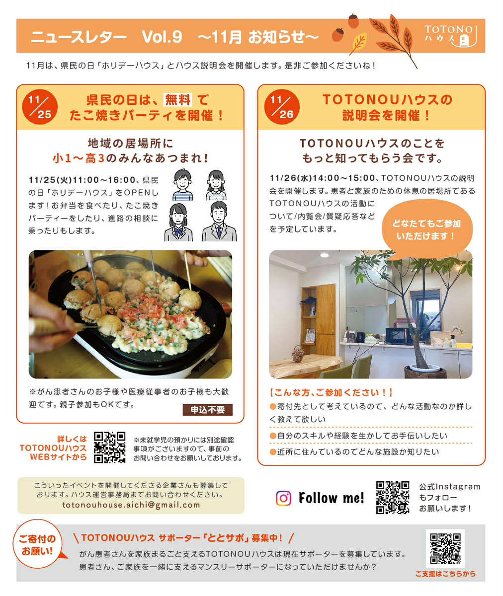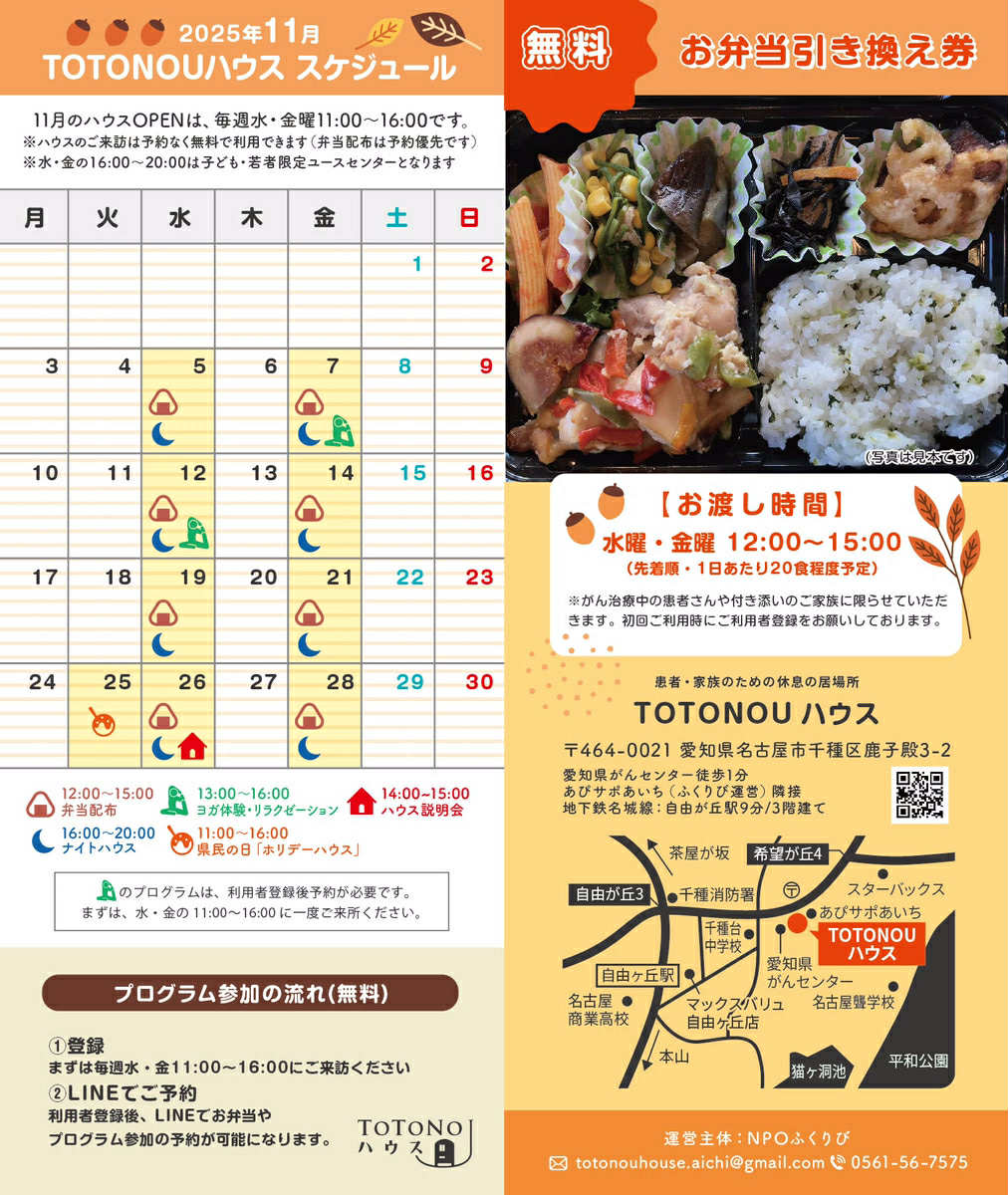 TOTONOUハウスでは、11月も 水曜日と金曜日 11:00〜16:00 にオープンしています。