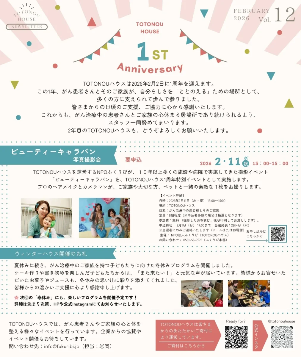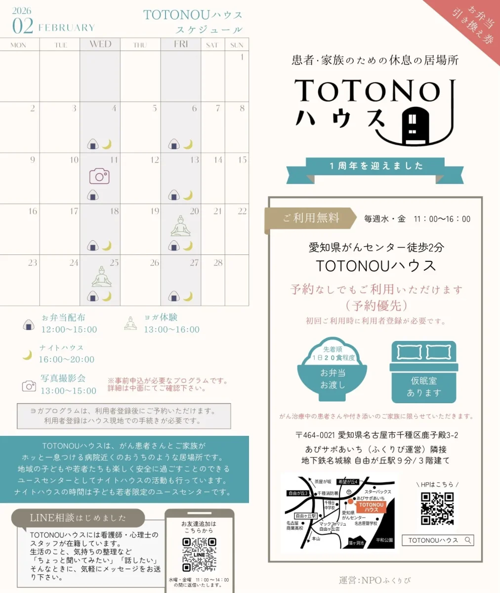 こんにちは。TOTONOUハウスの2月のお知らせです。