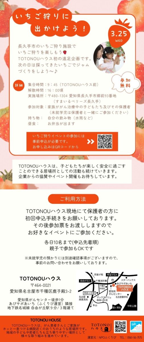 ・3/25(水) いちご狩り遠足(9:45TOTONOUハウスに集合)