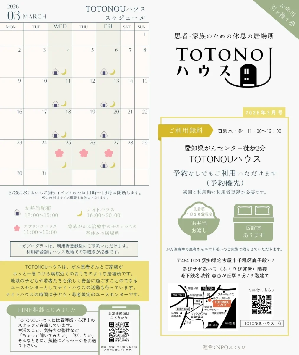 TOTONOUハウス 3月スケジュールのお知らせです。